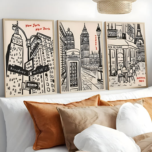Set of 3 Vintage-Inspired City Trio Canvas Wall Art