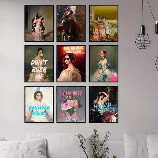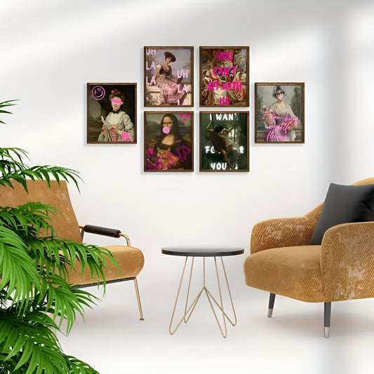 Set of 6 Retro Renaissance Girl & Pink Bubble Gum Posters