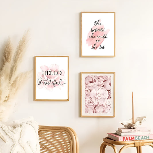 Set of 3 Nordic Fashion Pink Peony Flower Canvas Wall Art