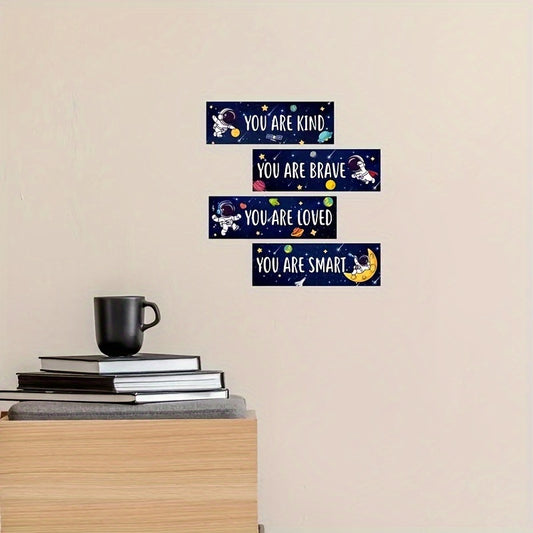 Set of 4 Vibrant Galaxy Adventure Wooden Sign