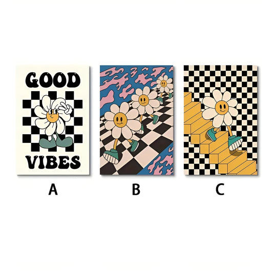 Set of 3 Joyful Face & Floral Canvas Wall Art Set