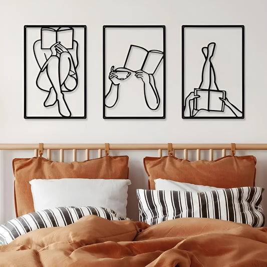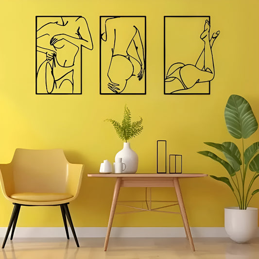 Set of 3 Abstract Female Line Art Metal Wall Decor