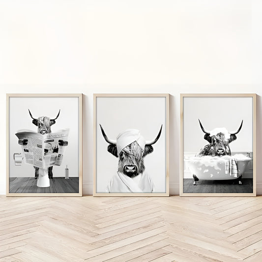 Set of 3 Rustic Farmhouse Style Highland Cow Wall Art
