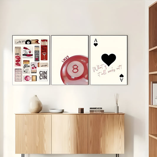 Set of 3 Chic Matchstick for Man Billiards Canvas Art Print