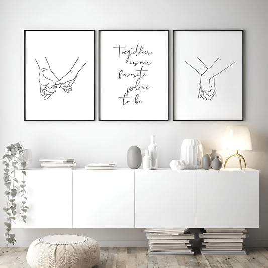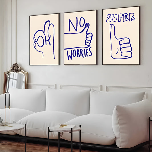 Set of 3 Blue & White Hand Gesture Canvas Poster