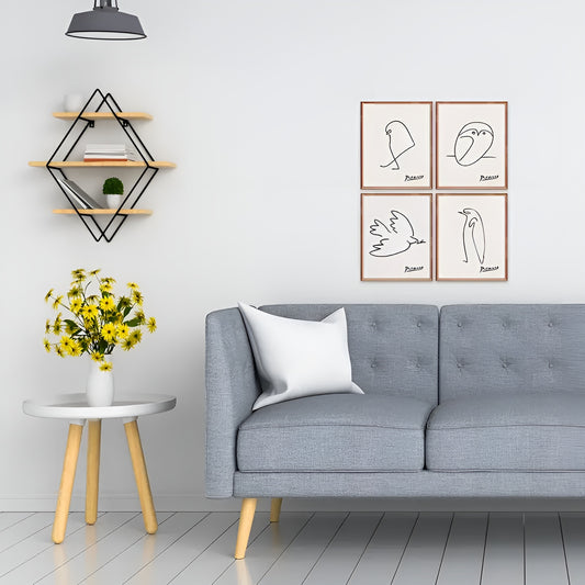 Set of 4 Picasso-Inspired Line Art Animal Prints