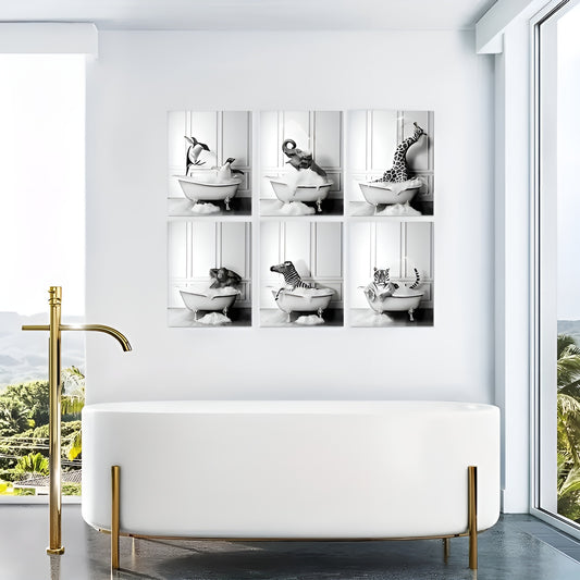 Set of 3 Whimsical Black Cat Bathroom Wall Art