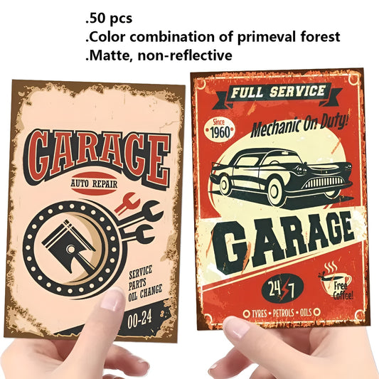 Set of 50 Vintage Car Aesthetic Wall Poster Kit