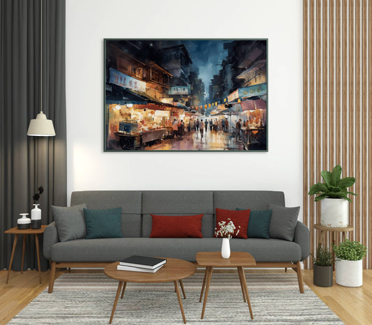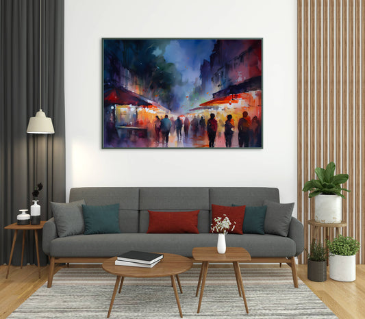 Lively Night Market Watercolor Print - Matte Canvas