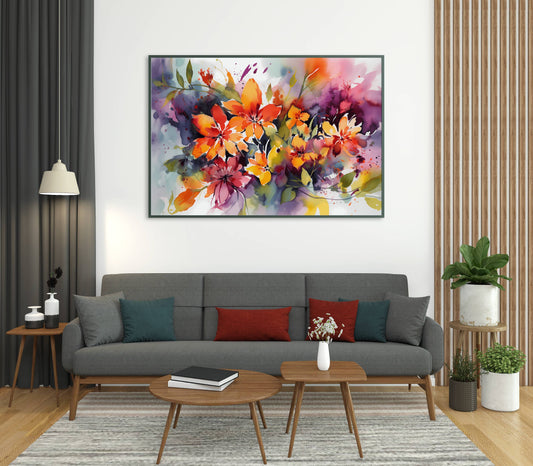 Expressive Tropical Floral Watercolor Print - Matte Canvas