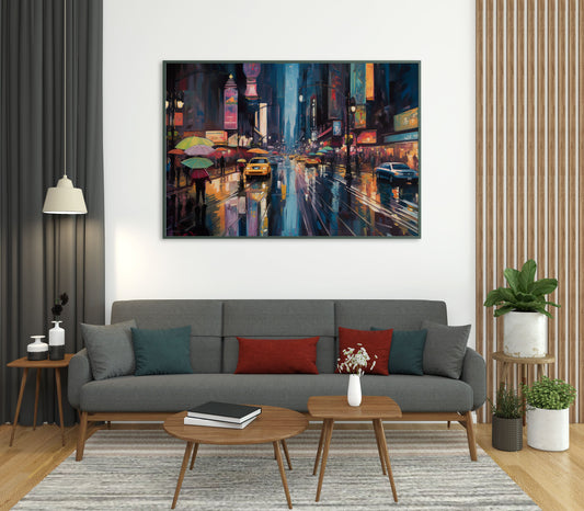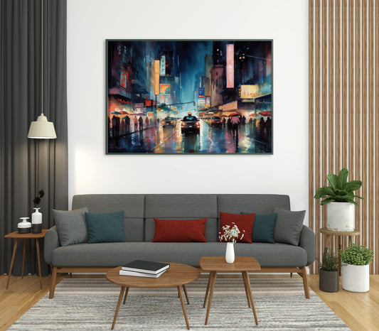 City Noir: Nightfall Rhapsody Watercolor Print - Matte Canvas