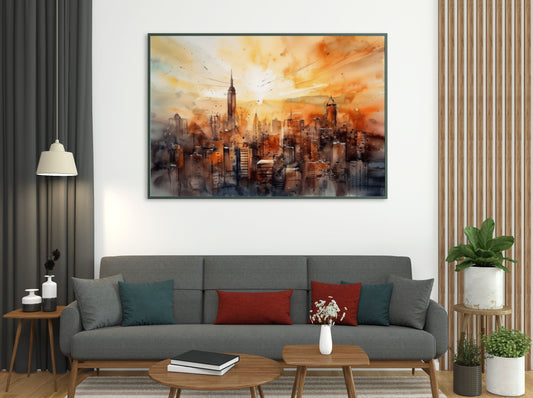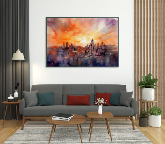 Sunset Symphony: Urban Dreams - Matte Canvas - Watercolor Art Prints