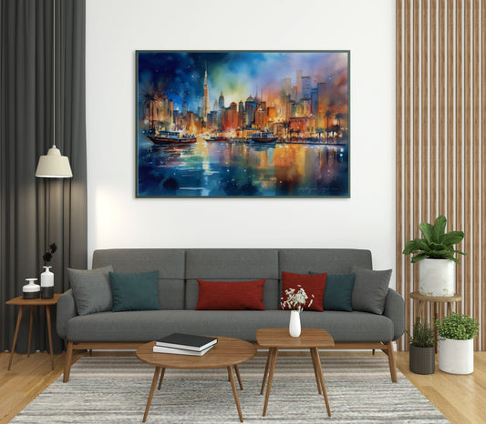 Nighttime Metropolis Watercolor Print - Matte Canvas