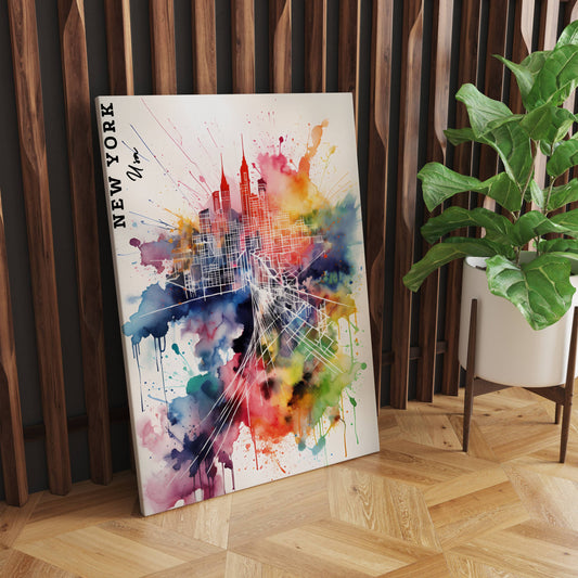 Dynamic New York City Map Watercolor Print- Matte Canvas