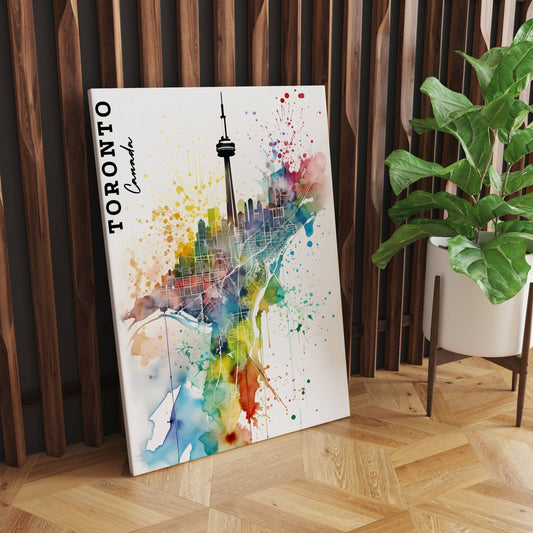 Dynamic Toronto City Map Watercolor Print - Matte Canvas