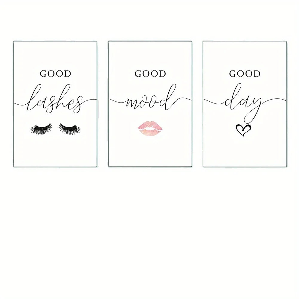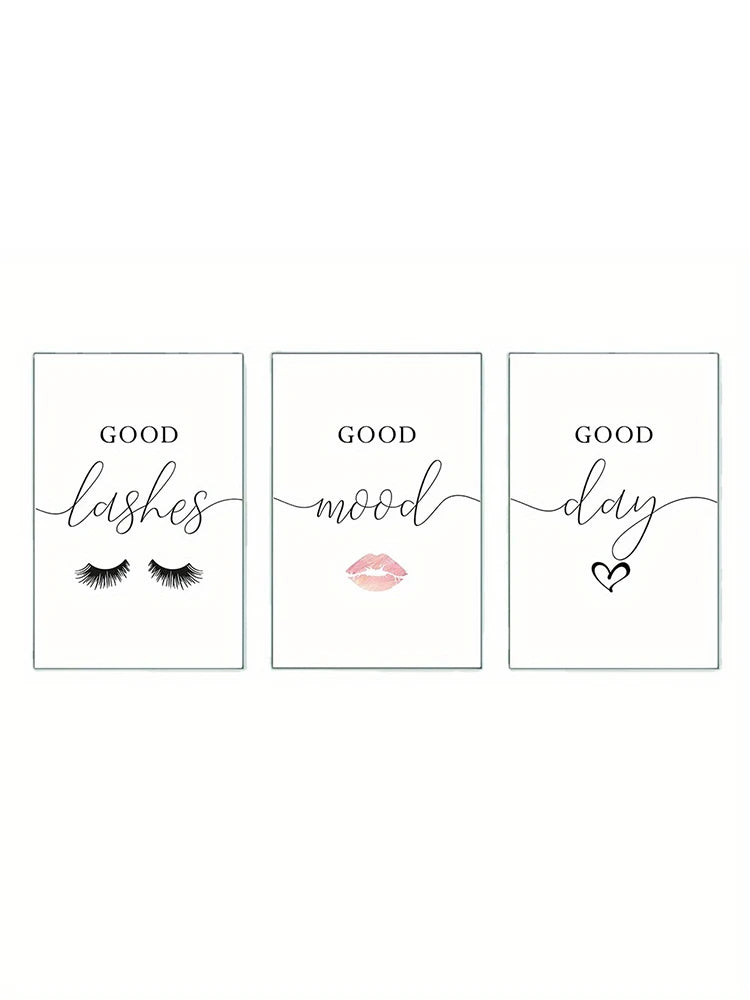 - Design: Set of 3 eyelash and makeup-themed posters, featuring a chic and glamorous aesthetic.