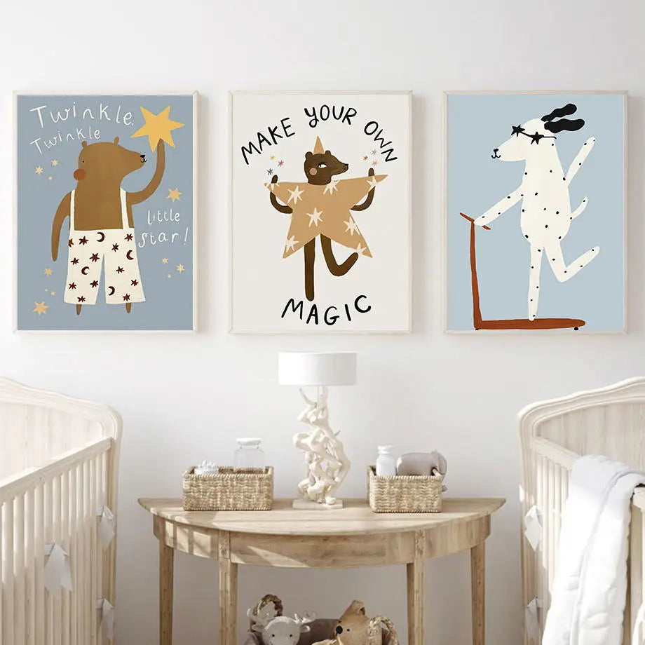 - Design: Light-hearted and fun artwork designed to bring smiles, spark imagination, and create a joyful environment for babies and kids.