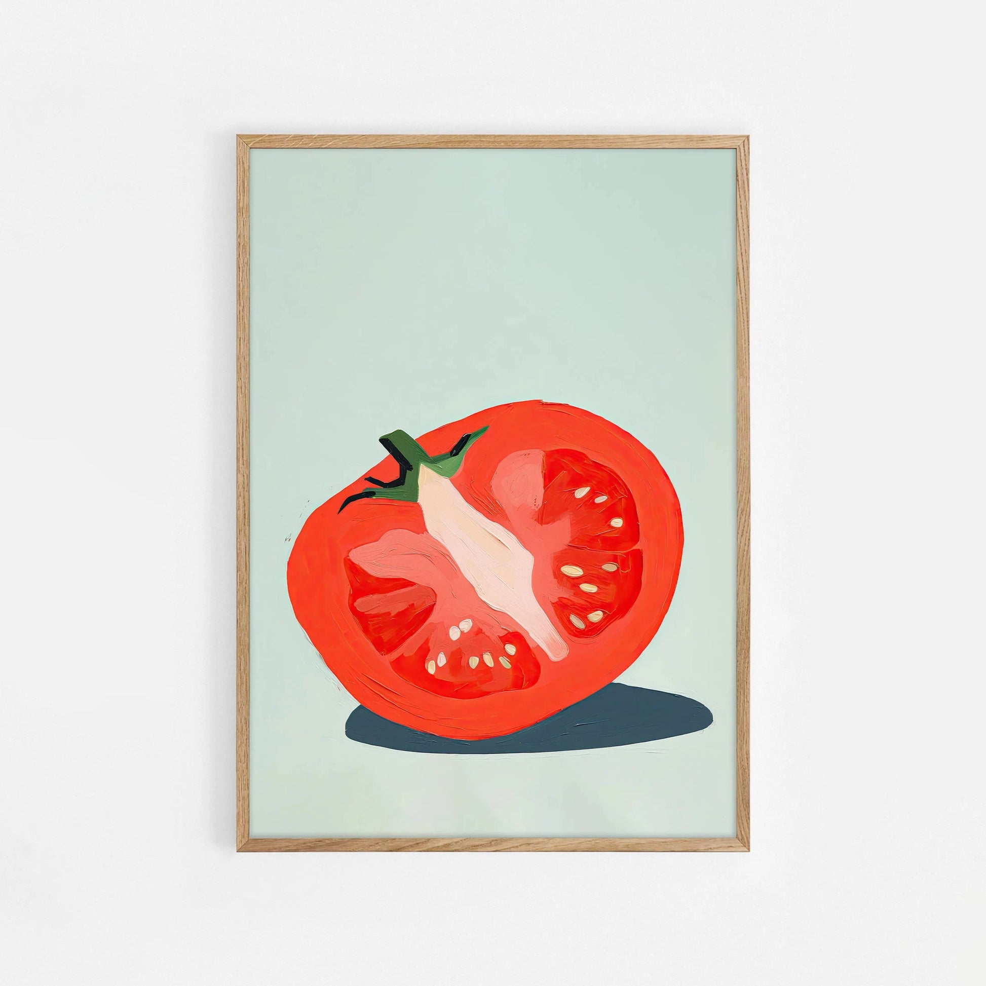 - Design: Features vibrant illustrations of orange, peach, strawberry, watermelon, lemon, tomato, and fig with eclectic shapes.