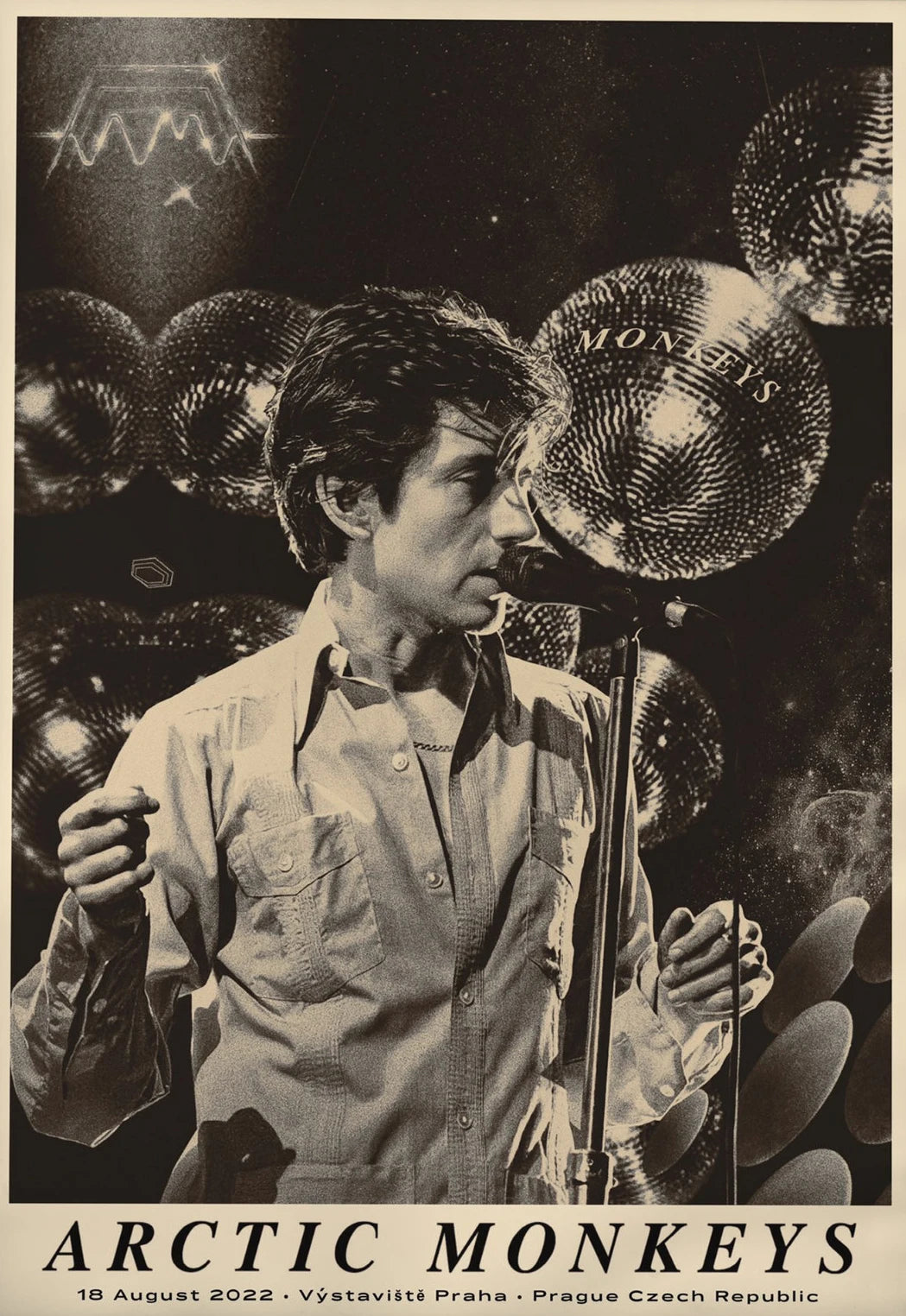 - Art Style: Vintage-inspired rock band music poster with a classic Arctic Monkeys album cover design.